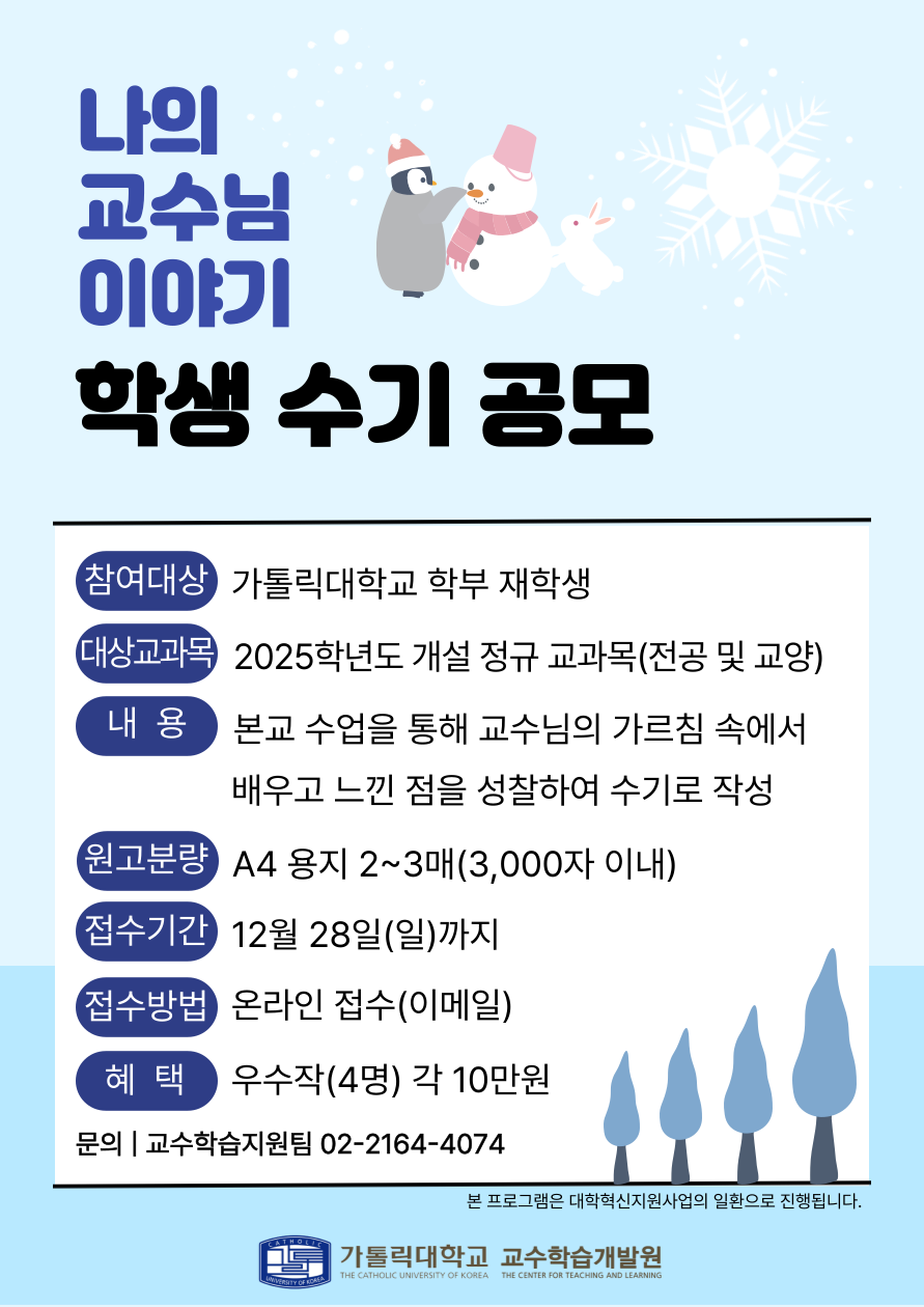 [교수학습개발원] 2025학년도 「나의 교수님 이야기」 학생 수기 모집 공고